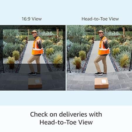 Head-To-Toe View gives you an expanded field of view from your front door, so you can see more of every visitor and check on packages left at your doorstep. With the Package Alerts feature (available with a Ring Protect subscription), you'll get real-time alerts whenever a package is detected.