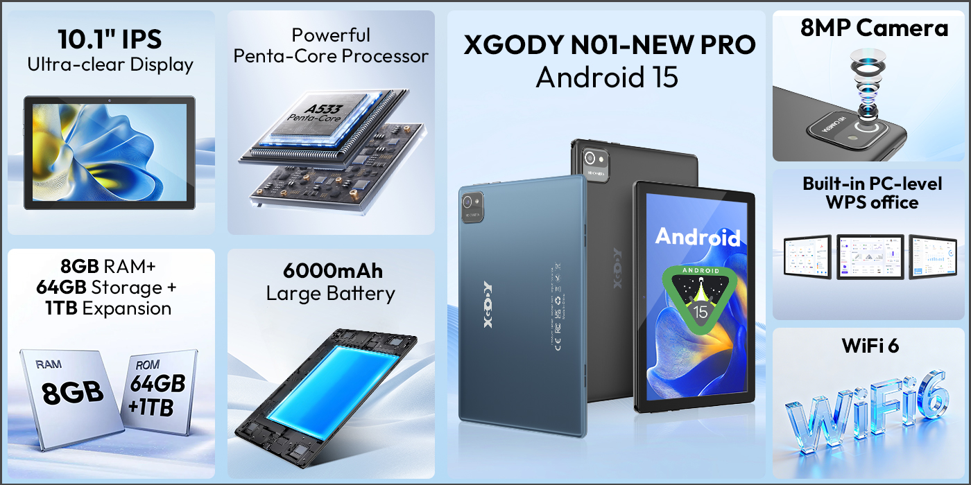 2025 NEW FHD N01 Wifi Tablet Android 15 PC 8GB+64GB Tablets 10.1 Inch 6000mAh
